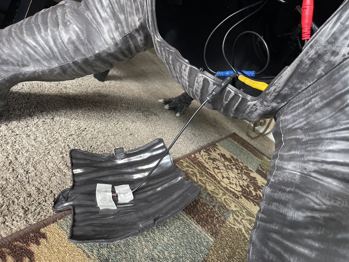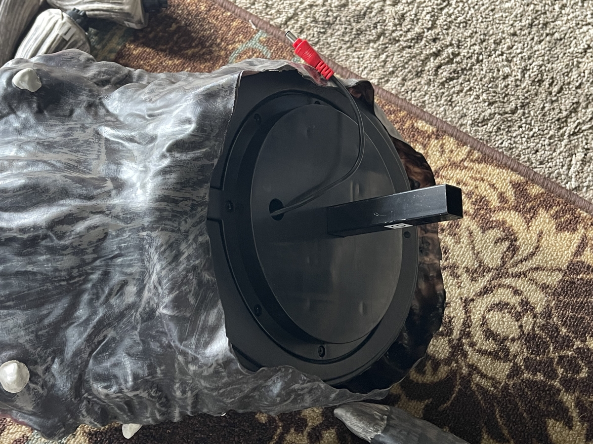 Like the legs, the tail attaches with a simple insert and twist motion. The head connects a little differently, as it is the one part of the animatronic that will have motion. It pairs with another metal pole inside of the body, in a fashion familiar to anyone that’s assembled Halloween animatronics before.